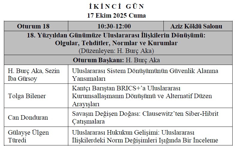 başlıklı çalışmalarıyla, Ankara Üniversitesi Siyasal Bilgiler Fakültesi tarafından 16-17 Ekim 2025 tarihlerinde düzenlenen IX. Mülkiye Uluslararası İlişkiler Kongresi'ne katılım göstermişlerdir.