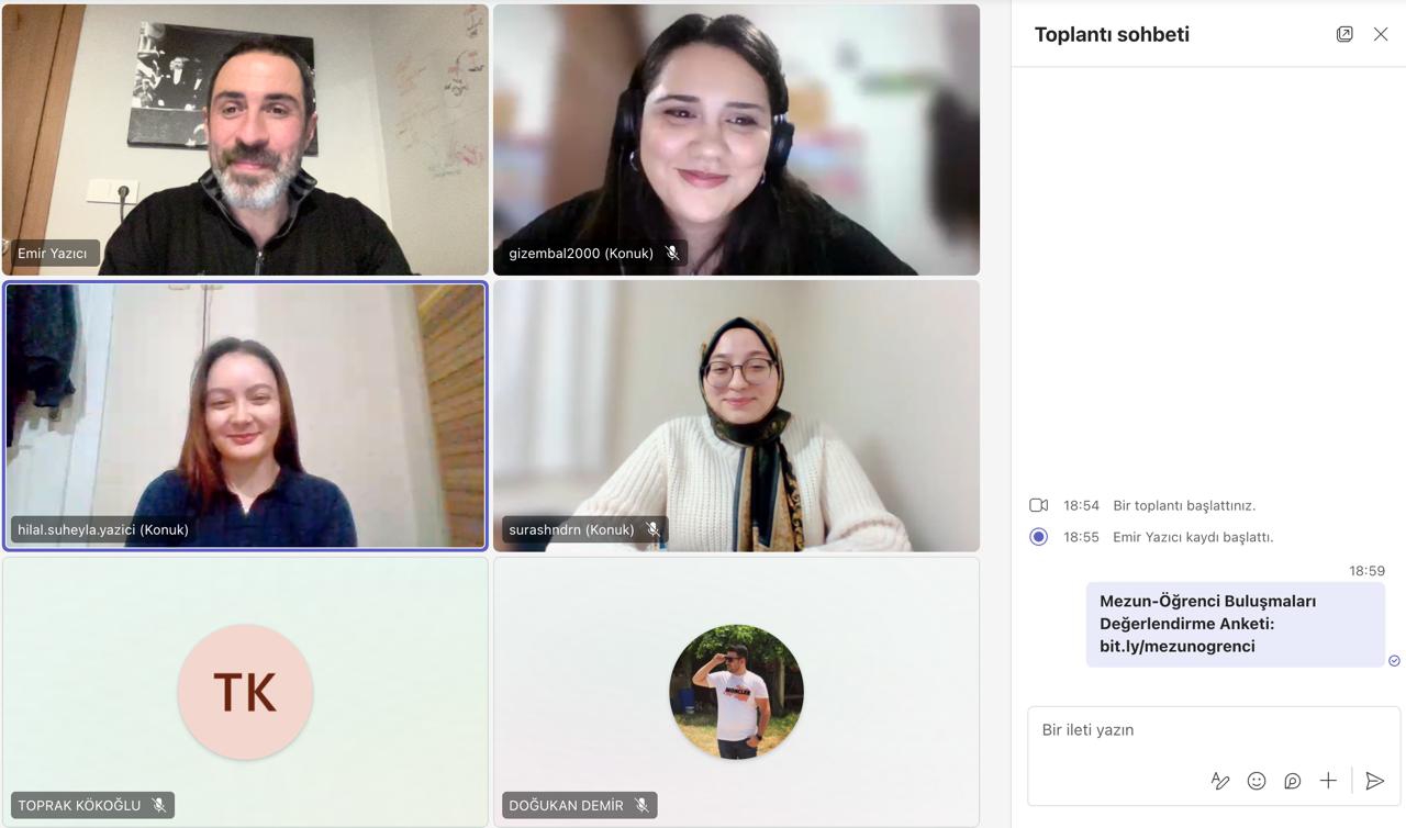Mezunlar iş mülakat tecrübelerini paylaşırken, Kariyer Merkezimiz tarafından verilen mülakat hazırlık eğitimlerinin önemine değinildi. Mezunlarımız staj ve eğitim fırsatlarının takip edilebileceği dijital platformları öğrencilere tanıttı. Etkinlik, yüksek lisans ve kişisel gelişime yönelik soruların ele alındığı soru–cevap bölümüyle tamamlandı.